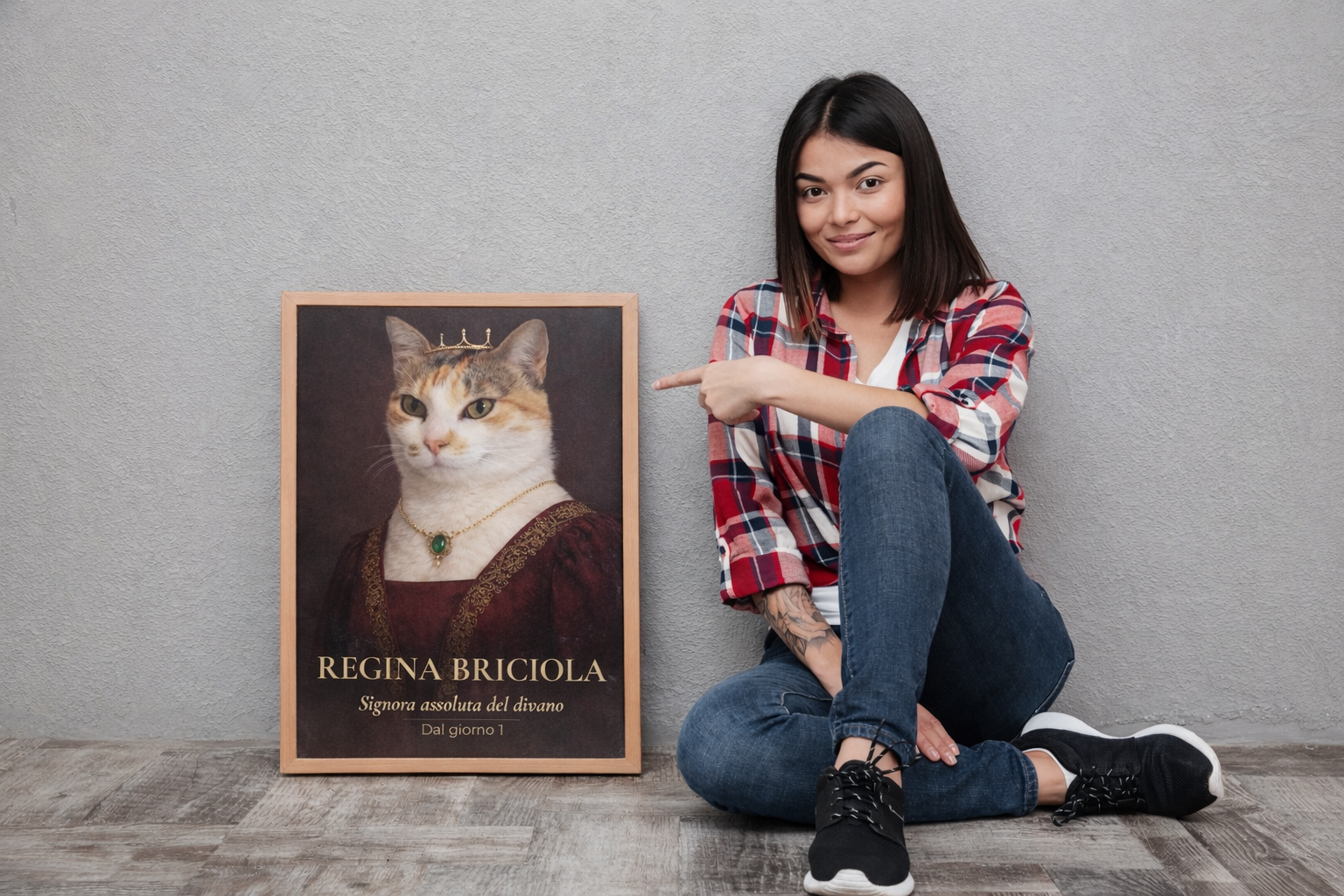 Trasforma il tuo pet in un ritratto premium, pronto da appendere.